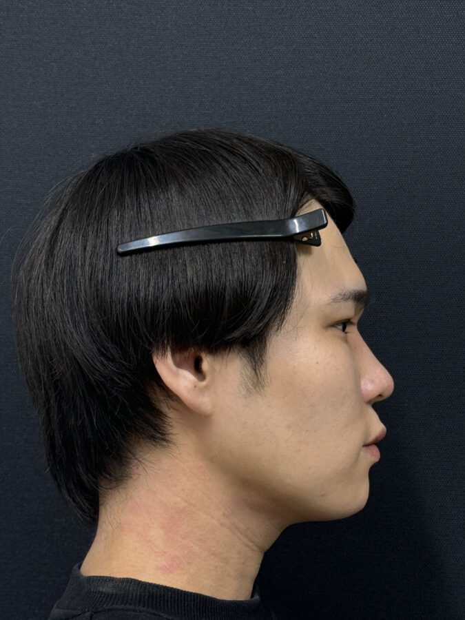 We used a total of 2cc of Volax, injecting 0.3cc into the nasal root, 0.3cc into the membranous nasal septum, 0.2cc into each nasolabial fold base, 0.4cc onto the periosteum of the chin, and 0.6cc into the subcutaneous layer of the chin.